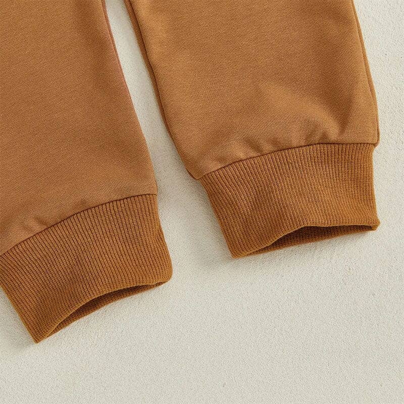 This festive little boy set is perfect for celebrating Halloween in comfort and style. The cream sweatshirt features a playful “I’m Digging Halloween” graphic with a pumpkin, bats, and a bright orange digger for a fun seasonal touch. Coordinating brown jogger pants add warmth and ease of movement, ideal for trick-or-treating or fall playdates.