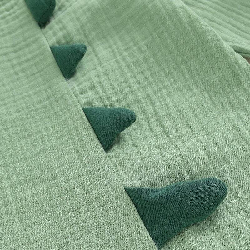 This adorable baby boy jumpsuit doubles as the perfect little costume for Halloween.The playful dinosaur hood with 3D teeth, eyes, and spikes adds a fun and festive touch for spooky season. Front button closures make changing quick and easy. Whether for trick-or-treating, a family party, or just festive photos, this jumpsuit is a must-have for your little dino!