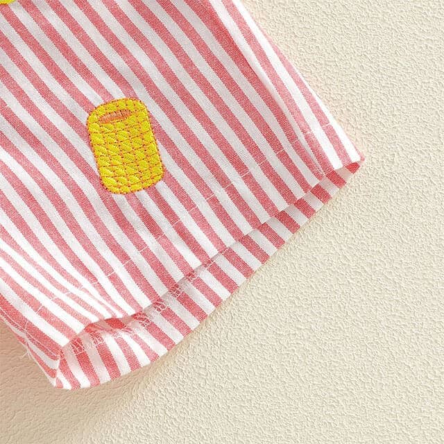 This adorable little boy set is perfect for sunny days and playful summer outings. Made from soft, breathable fabric, it keeps your little one cool and comfortable all day long. The fun “’Tis the Season” embroidery with cute seafood-inspired details adds a playful, seasonal touch. The striped shorts feature an elastic waistband with a drawstring for a secure and adjustable fit. Ideal for vacations, beach days, or everyday wear, this set is a fun and stylish addition to your little boy’s wardrobe.