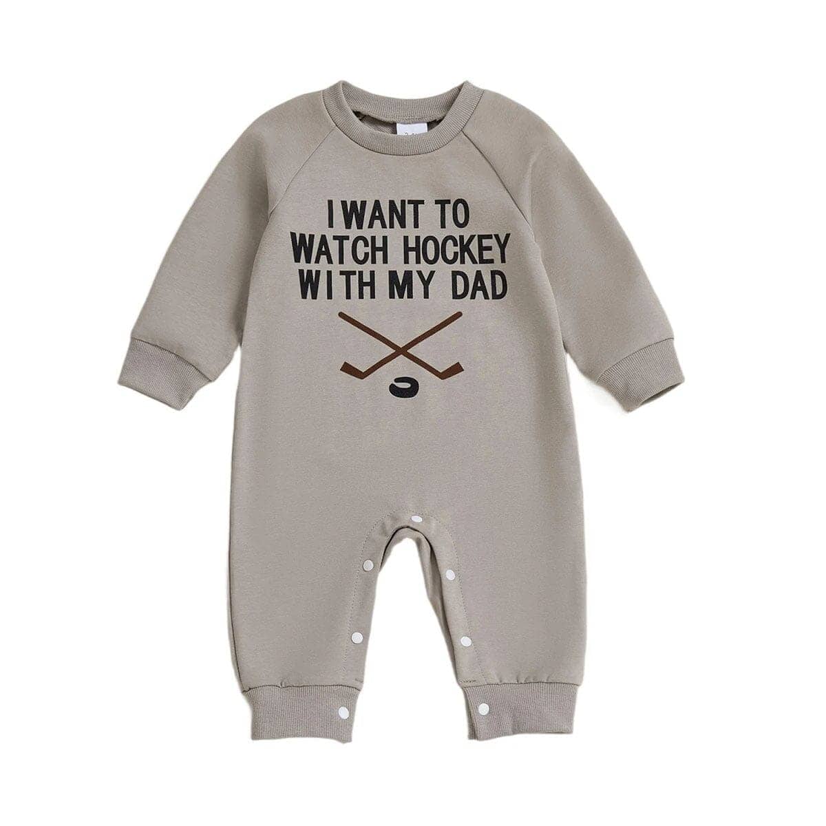 Get your little one game-day ready with these adorable hockey-themed baby jumpsuits! Available in two fun designs—“There’s a New Player in Town” and “I Want to Watch Hockey with My Dad”—each romper is perfect for mini fans of the rink. The snap-button closures make diaper changes quick and easy, while the long sleeves and cuffed hems keep baby snug. Whether you're headed to the arena or cuddling on the couch, these jumpsuits bring playful charm and sporty spirit to any outfit.