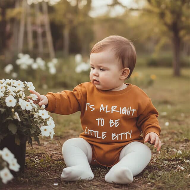 This adorable baby boy bodysuit is a cozy and playful choice for everyday wear. Made from soft, breathable cotton, it keeps your little one comfy while allowing easy movement. The fun “It’s Alright to Be Little Bitty” print adds a cheerful and confident touch that parents will love. With convenient snap closures at the bottom, diaper changes are quick and hassle-free. Perfect for lounging, playtime, or casual outings, this romper brings both comfort and cuteness together.