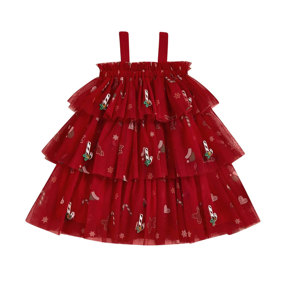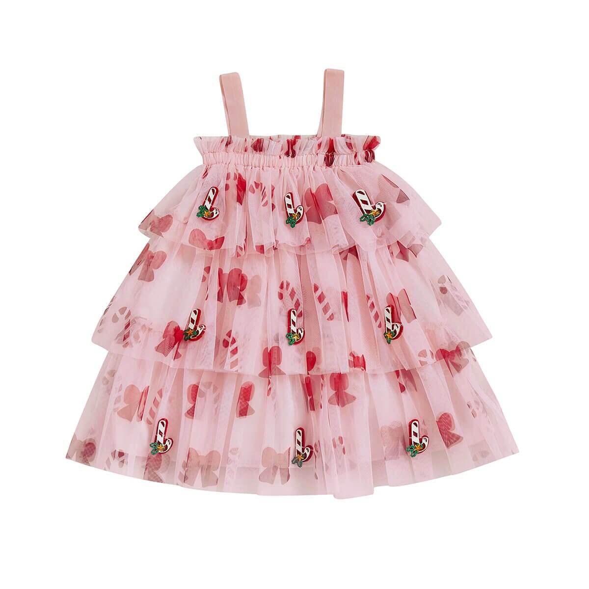 This festive toddler girl dress is perfect for holiday celebrations and Christmas parties. Designed with layered ruffles, it features a playful candy cane print that adds a cheerful holiday vibe. The sleeveless style with comfy straps makes it easy to wear while still looking festive and elegant. Comfortable, stylish, and full of holiday spirit, this dress will make your little one shine all season long.