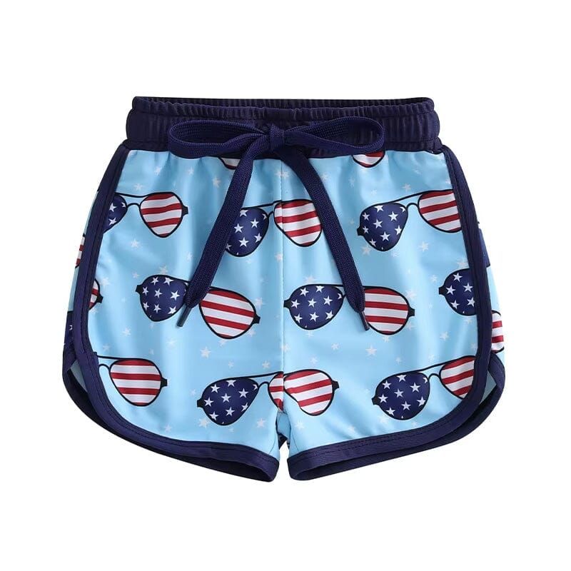 Make a splash this summer with these adorable unisex toddler swim shorts, perfect for 4th of July fun! Available in two festive designs—one featuring red, white, and blue popsicles, and the other with patriotic sunglasses—these shorts are bursting with American pride. The elastic waistband with a drawstring ensures a snug, comfy fit for active little swimmers. Let your little one celebrate Independence Day in star-spangled style!
