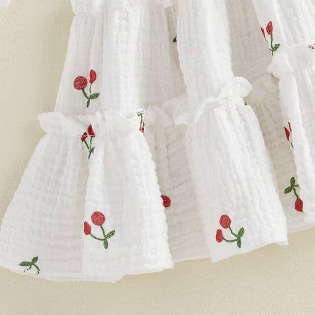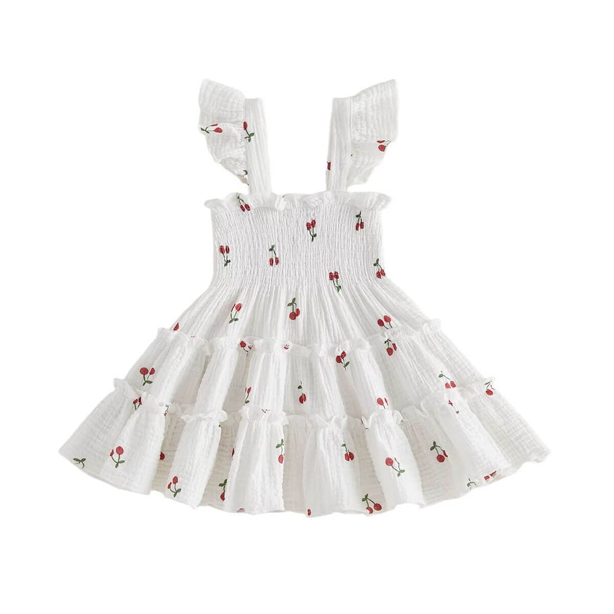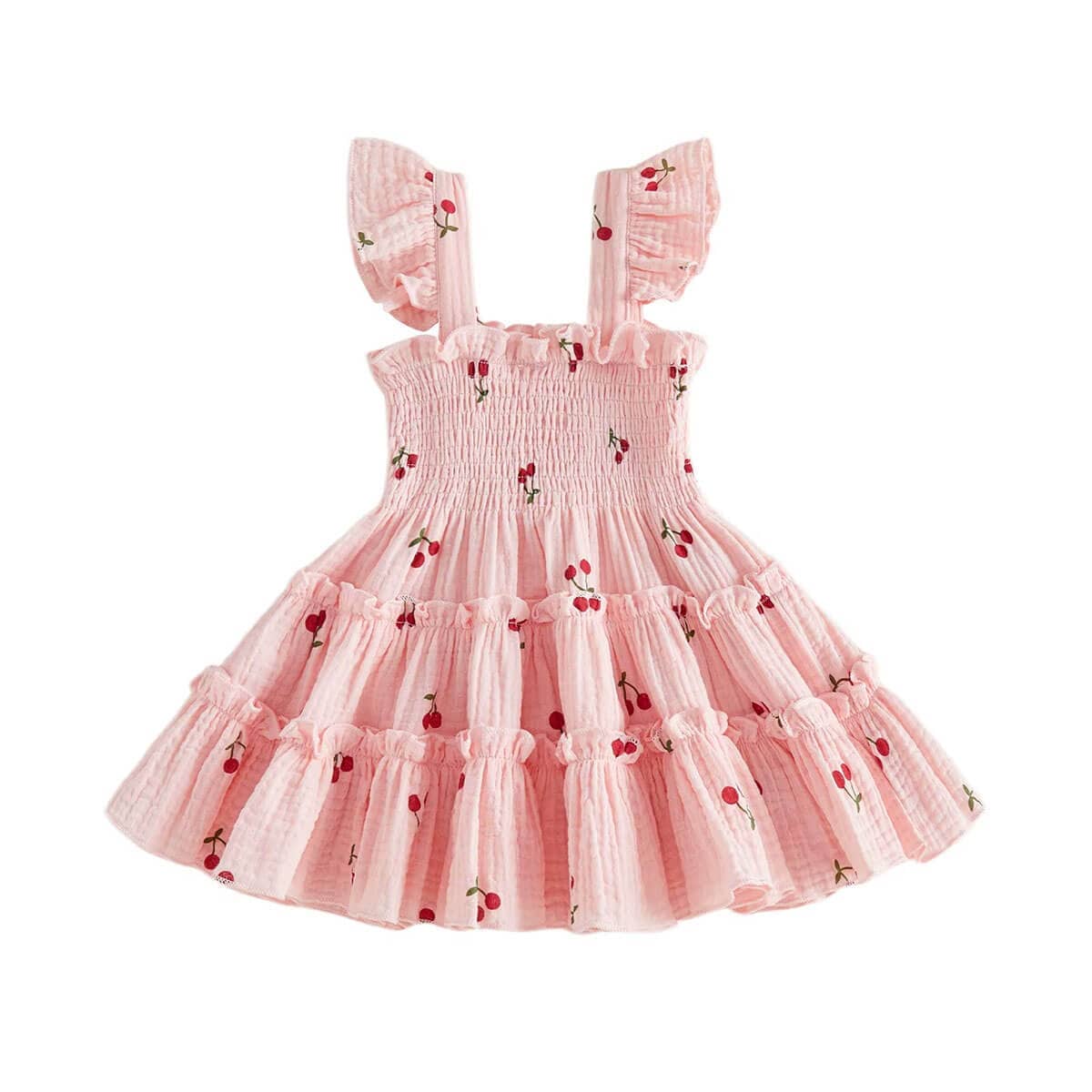 This adorable toddler girl dress is perfect for warm days and special moments, featuring a charming allover cherry print and a sweet tiered silhouette that adds extra twirl-worthy flair. Designed with soft smocked detailing and flutter sleeves, it offers a comfortable, flexible fit that’s easy for little ones to move and play in. Ideal for everyday wear, family outings, or summer celebrations, this dress is as practical as it is stylish.