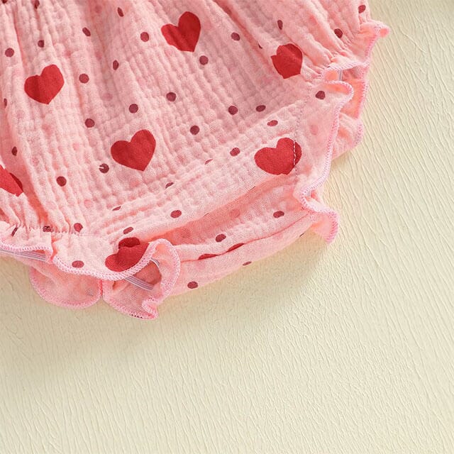This adorable baby girl set is made for Valentine’s Day and every little moment filled with love. The lightweight, soft fabric features an allover heart print that adds a charming and festive touch. The flutter-sleeve top with smocked detailing pairs perfectly with the matching bloomers for an effortlessly cute look. An elastic waistband ensures a comfy fit that moves with your baby. Perfect for photos, parties, or everyday cuteness, this set is sure to melt hearts.