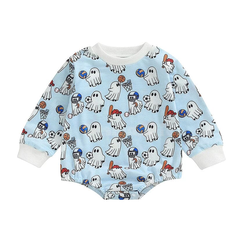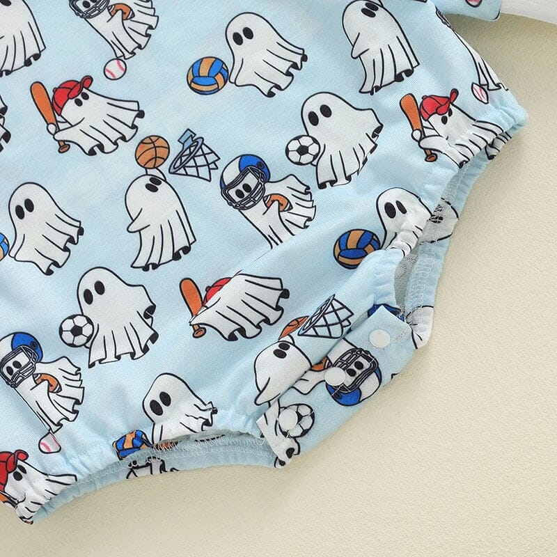 Get your little one into the Halloween spirit with this adorable unisex baby bodysuit! Featuring a playful print of cartoon ghosts dressed in sports gear, it’s the perfect mix of spooky and sporty. Convenient snap closures make diaper changes quick and easy. Whether for Halloween festivities or cozy everyday style, this bodysuit is a fun and festive choice.