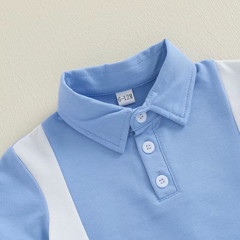 Keep your little guy cool and stylish in this sporty toddler boy set, available in two classic color combos. The collared polo top features bold side stripes and a button-up front for a smart yet playful look. Paired with soft, stretchy shorts featuring an elastic waistband and handy pockets, this outfit is perfect for active days. Whether it’s a playdate or a casual family outing, he’ll stay comfortable and cute all day long.