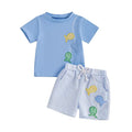 Make a splash this summer with this adorable toddler boy set! Featuring a soft blue tee and matching striped shorts, both pieces are decorated with playful gingham fish appliqués for a fun, ocean-inspired look. Lightweight and breathable, this set is perfect for beach days, park outings, or backyard adventures. A must-have outfit for any little explorer who loves the sea!