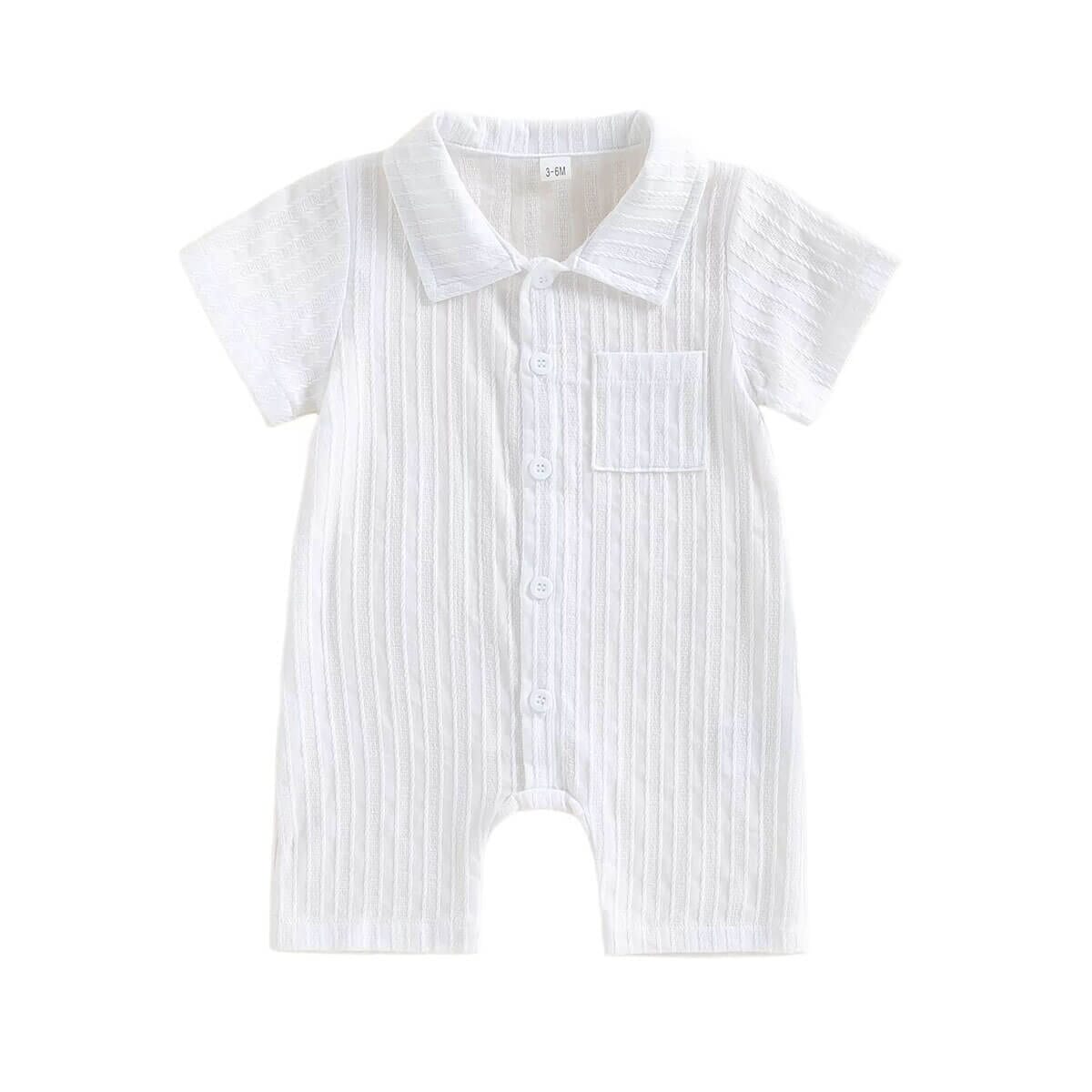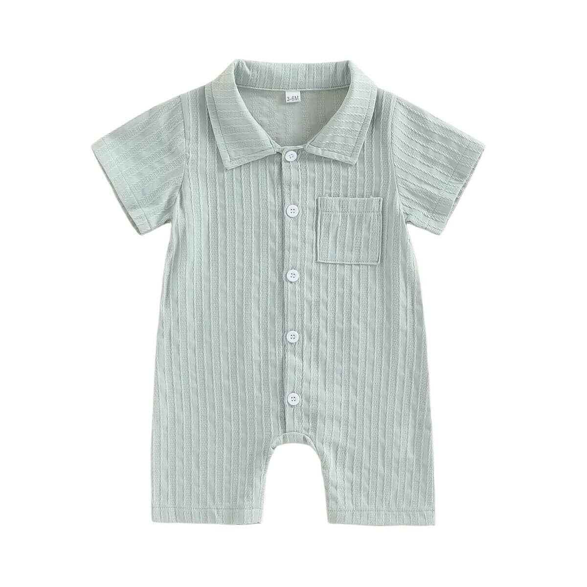 This stylish baby boy romper is designed for both comfort and a polished everyday look. The soft textured fabric feels gentle on delicate skin while allowing easy movement throughout the day. Button-front detailing and a classic collar add a charming, put-together touch. Available in four versatile colors, it’s a perfect option for playtime, outings, or special occasions.
