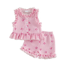 Short Sleeve Striped Bows Toddler Set