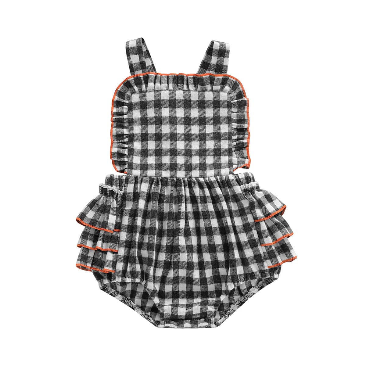 This adorable baby girl romper features a charming checkered pattern and sweet ruffle details that make it perfect for everyday wear or special photos. The adjustable shoulder straps ensure a great fit as your baby grows. Snap closures at the bottom make diaper changes quick and easy. Available in two cute colors, so you can choose the style that fits her personality best.