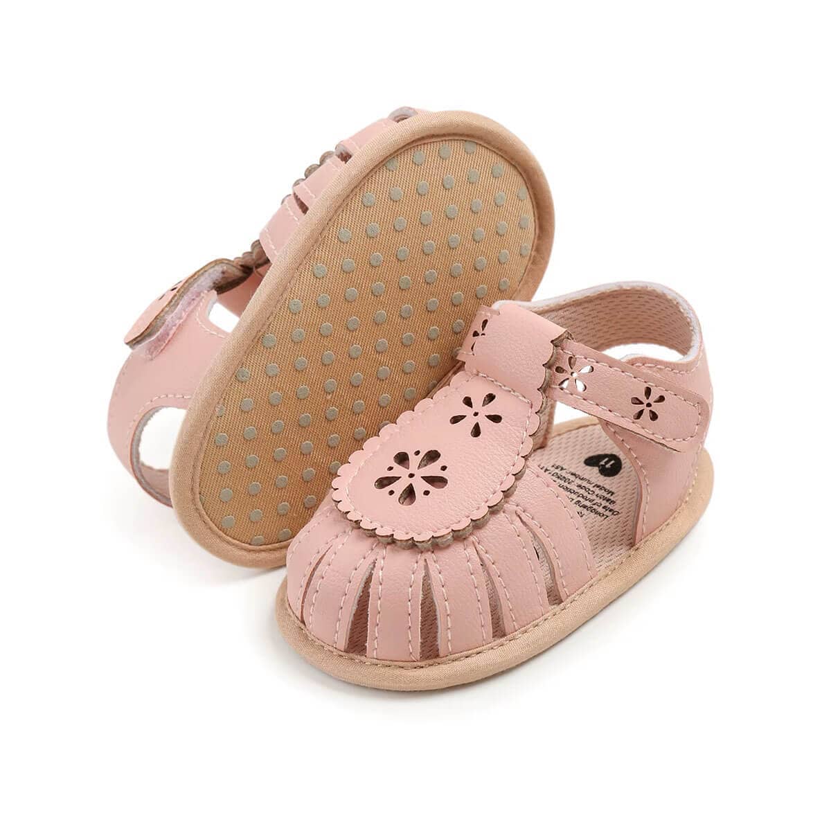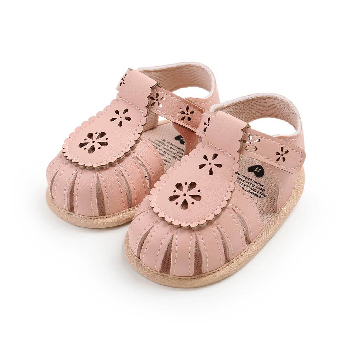 These adorable baby girl sandals combine comfort and charm for your little one’s everyday adventures. Designed with delicate floral cutout details, they add a sweet and stylish touch to any outfit. The soft, flexible sole helps support tiny feet while allowing natural movement during those first steps. An easy hook-and-loop strap ensures a secure fit and makes them simple to put on and take off.