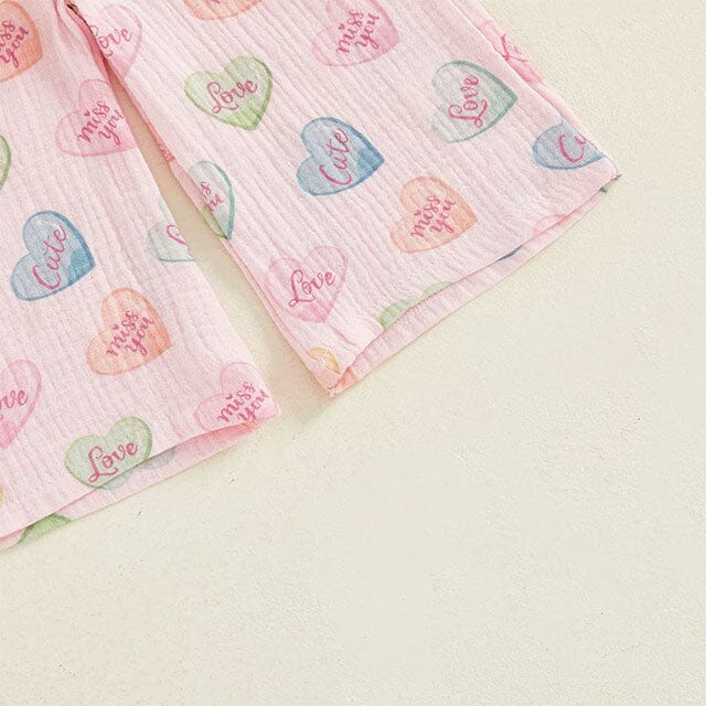 This adorable toddler girl set is perfect for adding a sweet and festive touch to St. Valentine’s Day. The smocked top with delicate tie straps creates a charming, girly silhouette your little one will love. Soft pastel heart prints throughout the outfit bring a playful Valentine-inspired look. Made from lightweight, breathable fabric, it keeps her comfortable whether she’s playing, celebrating, or posing for cute photos. A lovely ensemble designed to make holiday moments even more memorable.