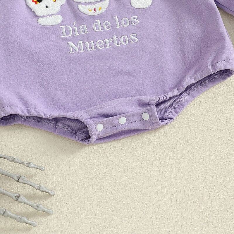 This adorable bodysuit is inspired by Día de los Muertos (Day of the Dead), the Mexican holiday that celebrates life, remembrance, and loved ones who have passed. Featuring bright embroidered sugar skulls and colorful details, it brings festive charm while staying super soft and cozy for little ones. Though dedicated to Día de los Muertos, its playful skull design also makes it a great option for Halloween celebrations.