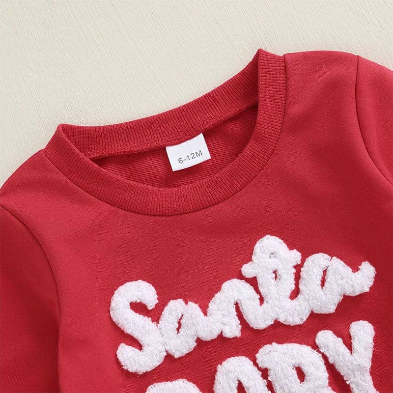 This cozy unisex set is perfect for keeping little ones festive and comfortable during the holiday season. The bright red sweatshirt features fluffy white embroidered lettering that reads “Santa Baby,” adding a playful and cheerful touch. Paired with soft plaid pants in red and gray tones, the outfit combines holiday style with everyday comfort. Ideal for Christmas photos, parties, or lounging at home, this set makes a fun and practical choice for celebrating the season.