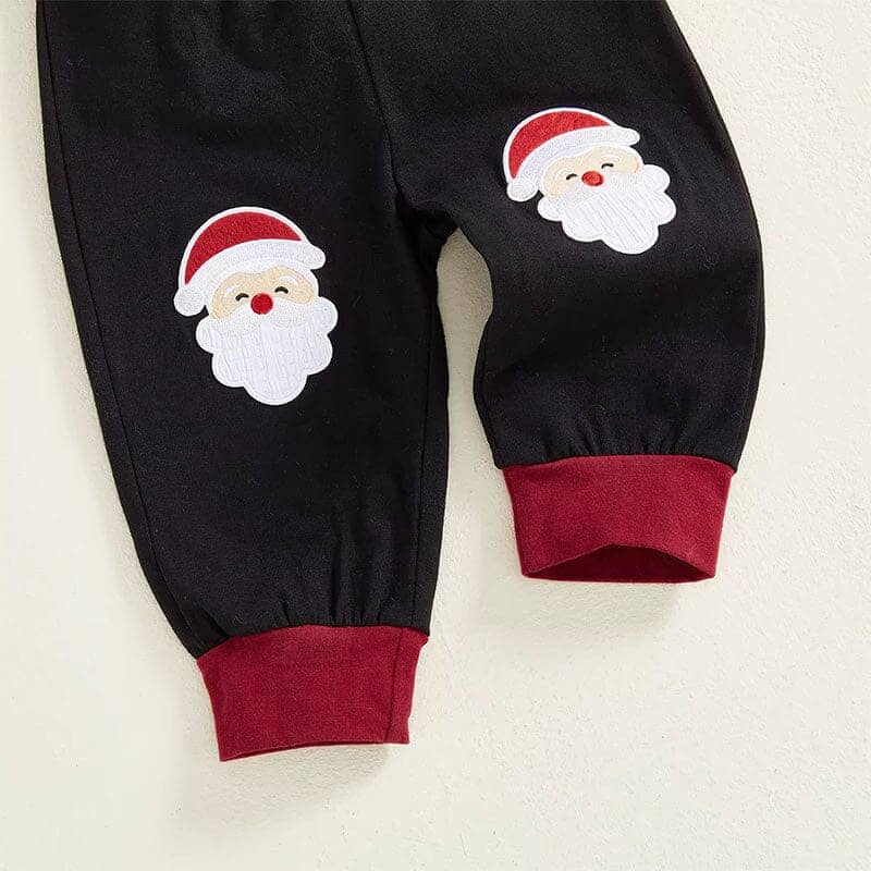This adorable baby boy set is the perfect outfit for celebrating his very first Christmas. The red long-sleeve bodysuit features a festive “My 1st Christmas” design with a cute Santa graphic that spreads holiday cheer. Soft black pants with matching Santa patches add an extra playful touch, while the stretchy waistband ensures comfort all day long. The set is completed with a cozy Santa hat for a picture-perfect look. Ideal for Christmas parties, photoshoots, or cozy family gatherings!
