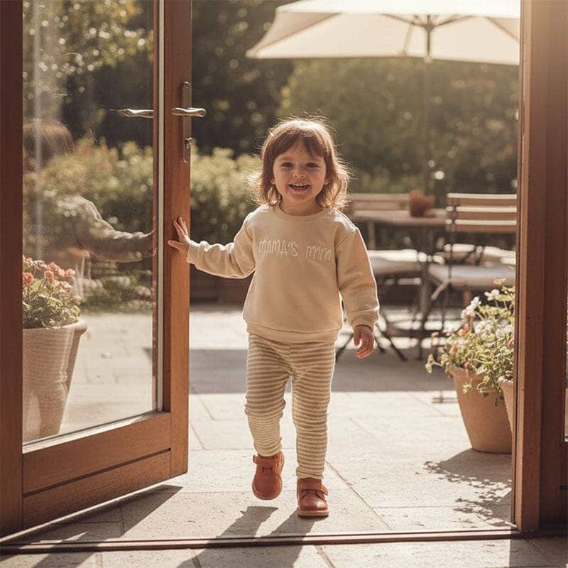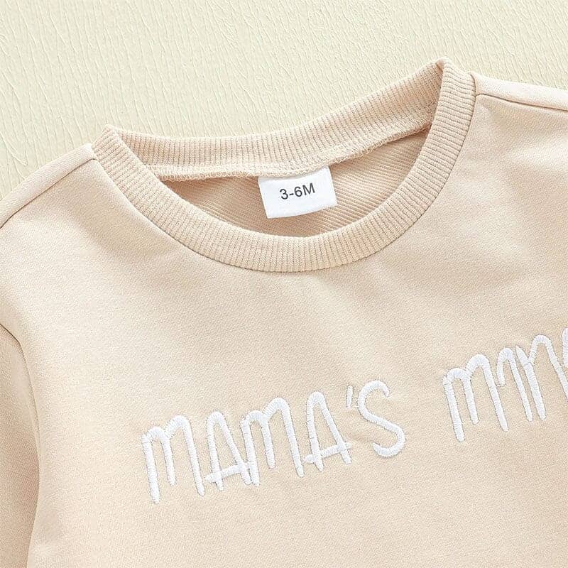 This sweet baby girl set is the perfect cozy outfit for your little one! The soft beige sweatshirt features the adorable embroidered phrase “Mama’s Mini,” celebrating that special mother-daughter bond. Paired with comfy striped leggings, this outfit combines style and comfort effortlessly. Ideal for everyday wear, outings, or snuggle time with mom, this set is both cute and practical!