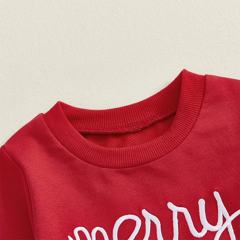 This toddler girl set is the perfect festive outfit for Christmas celebrations. The bright red sweatshirt features the word “merry” in a playful script, bringing a cheerful holiday vibe. Paired with a tiered plaid tulle skirt, it adds a fun and dressy touch with plenty of twirl-worthy layers. The skirt’s gold elastic waistband provides both sparkle and comfort for all-day wear. Ideal for holiday parties, family photos, or Christmas morning, this set is both stylish and festive.
