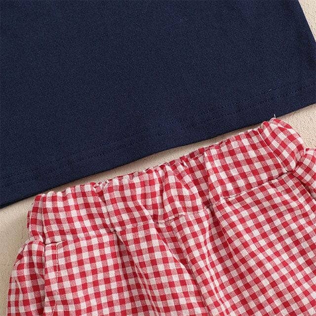 This fun and sporty toddler boy set is perfect for little ones who love to play and stay active. It features a soft short-sleeve t-shirt with a playful baseball-themed design, adding a charming and energetic touch. The matching gingham shorts come with an elastic waistband for a comfortable and secure fit all day long. Made from lightweight and breathable fabric, this outfit keeps your little boy cool and comfortable during warm days.