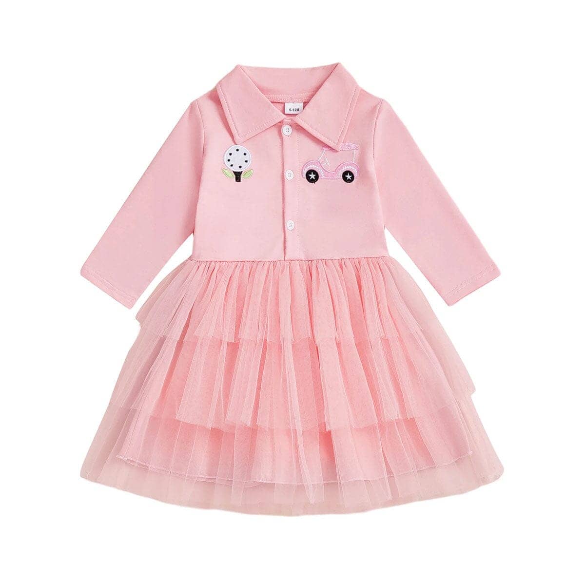 This adorable toddler girl dress is the perfect blend of playful and elegant! It features a button-up shirt-style top with sweet embroidered details — a little car and a tree — adding a fun, whimsical touch. The layered tulle skirt gives it a lovely, twirly look that’s perfect for special occasions or everyday dress-up fun. Ideal for parties, photos, or outings, this charming pink dress will make her shine wherever she goes!