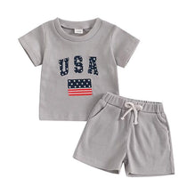 This little boy's set is the perfect patriotic outfit for celebrating the 4th of July in style. The cream-colored tee features a bold "American Dude" graphic with red, white, and blue lettering, adding a fun and festive touch. Paired with light blue gingham shorts that offer both comfort and charm, this set is ideal for summer outings, fireworks, and family barbecues. Whether at a parade or a backyard picnic, this outfit will have your little guy looking adorable and ready for Independence Day fun!