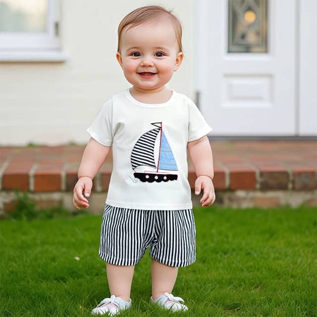 This charming toddler boy set includes a soft short-sleeve tee with an adorable sailboat applique and matching striped shorts, creating a playful, nautical-inspired look perfect for sunny days. Ideal for playtime, outings, or summer adventures, this two-piece outfit keeps your little one cool while looking effortlessly cute — a must-have set for warm-weather fun.