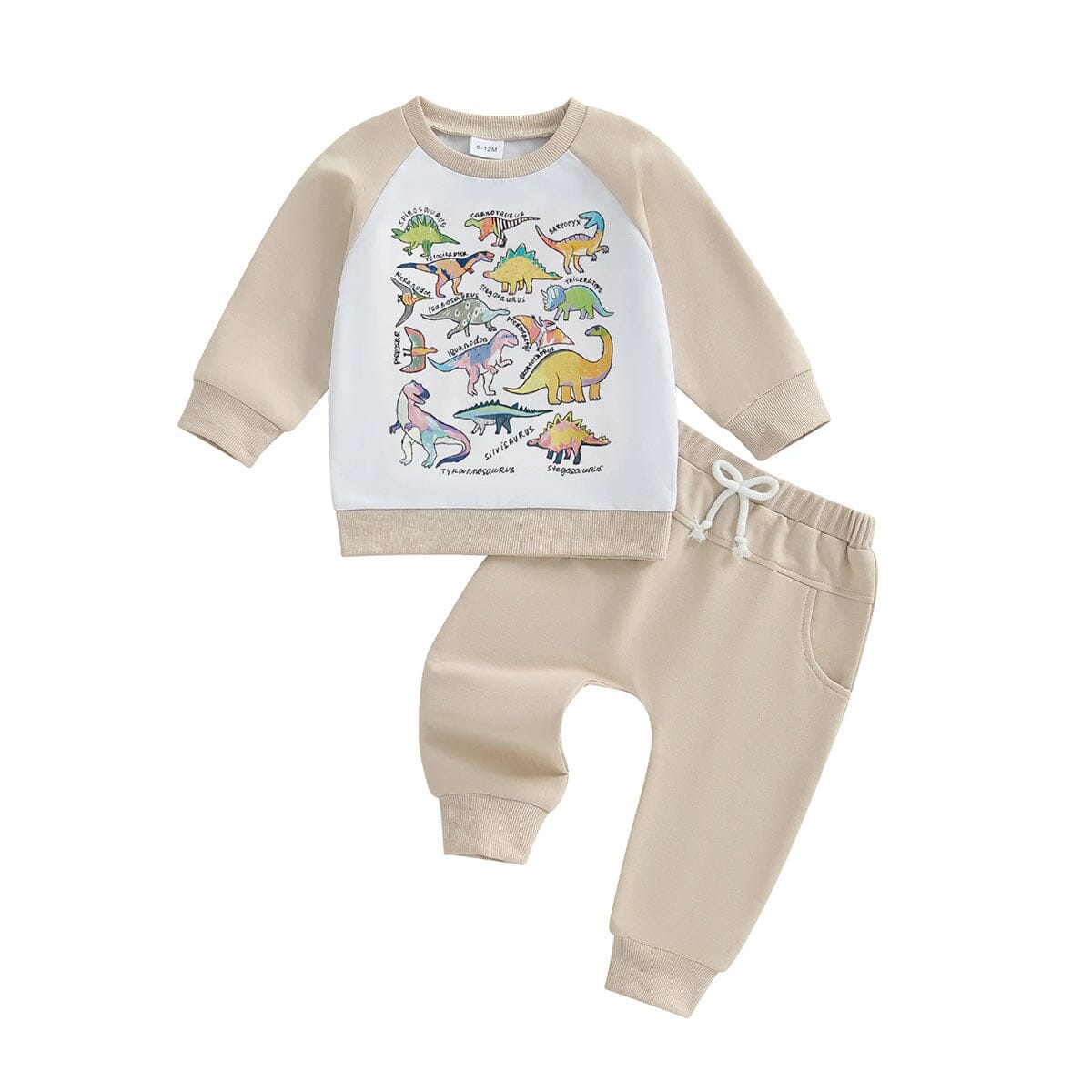 This fun toddler boy set is perfect for little dinosaur lovers. The long-sleeve sweatshirt features colorful dinosaur prints with their names, making it both playful and educational. Paired with soft matching jogger pants with an elastic waistband and drawstring, the outfit is designed for comfort and easy movement. Ideal for playdates, outings, or cozy days at home, this set combines comfort with a fun, adventurous look.