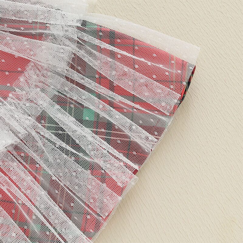 This charming toddler girl set is the perfect festive outfit for Christmas celebrations. The navy blue top is decorated with adorable plaid bows, adding a playful and stylish holiday touch. Paired with a layered tulle skirt featuring sparkly details and a shimmering gold waistband, it creates a magical and festive look. Cute, cozy, and full of seasonal charm, this set is sure to make your little one shine during the holidays.