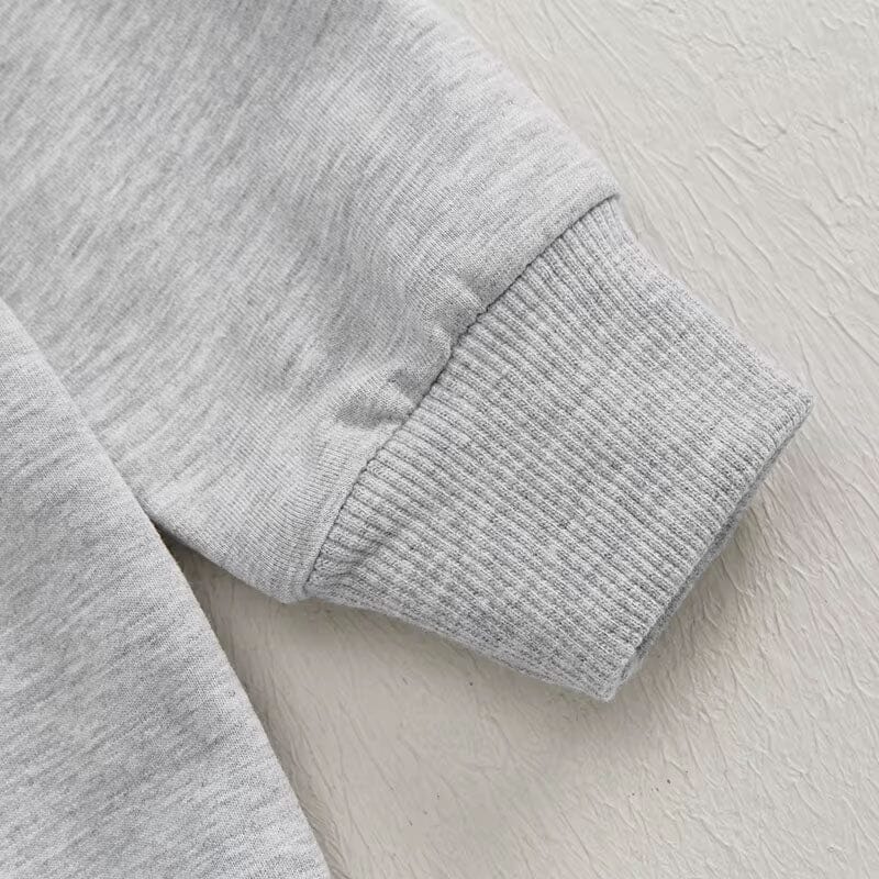 This adorable little boy's sweatshirt features a playful golf-themed design with a green putting patch and red flag detail. The cozy gray fabric is complemented by a stylish green and white gingham collar, giving it a preppy yet casual look. The half-zip front makes it easy to slip on and off, perfect for busy mornings or layering on cooler days. Ideal for both playdates and family outings, this sweatshirt blends sporty charm with everyday comfort.