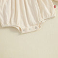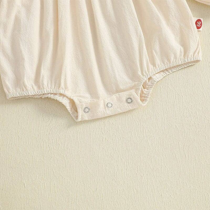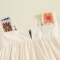 Bring a burst of color to your baby girl's wardrobe with this adorable long-sleeve romper. Featuring vibrant, multicolor embroidered squares across the chest and straps, it offers a playful, boho-inspired look. Gentle elastic at the cuffs and leg openings ensures a snug, cozy fit without restricting movement. Convenient snap closures at the bottom make diaper changes quick and hassle-free.