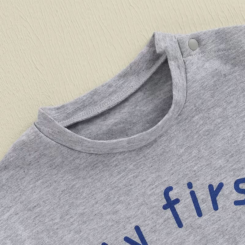 Celebrate your baby’s very first Independence Day in adorable style with this unisex "My First 4th of July" bodysuit! Featuring festive red, white, and blue lettering with a charming little top hat graphic, it’s the perfect outfit for family photos, fireworks, or backyard BBQs. Available in both classic white and cozy heather gray, this bodysuit suits any mini patriot’s wardrobe. Make their milestone moment even more special with this cute and comfy holiday essential!