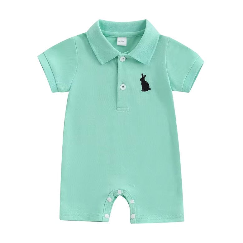 This adorable baby boy romper is the perfect outfit for Easter celebrations! Designed in two vibrant colors—fresh mint green and playful orange—it features cute bunny embroidery for a festive touch. The classic polo collar and button-down front add a stylish yet comfortable look, making it great for both casual outings and holiday gatherings. With convenient snap closures for easy diaper changes, this romper is a must-have for springtime fun!