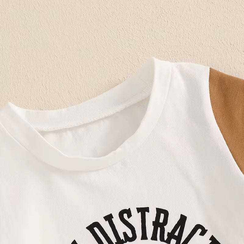 This playful little boy set is made for snack lovers with big personalities. The short-sleeve tee features a fun "Easily Distracted by Snacks" print with a cute cookie graphic, adding a touch of humor to your toddler's outfit. Paired with comfy drawstring shorts in a warm caramel tone, it’s perfect for everyday adventures. Ideal for casual outings, daycare, or lounging at home—this set brings both charm and comfort to your little one’s wardrobe.