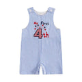 Celebrate your little one’s first Independence Day in style with this adorable baby boy romper. Featuring classic blue and white seersucker stripes, it’s embroidered with "My First 4th" and playful stars for a festive touch. Button closures on the shoulders and snaps at the bottom make dressing and diaper changes easy. Perfect for family barbecues, fireworks, and capturing those patriotic first memories!