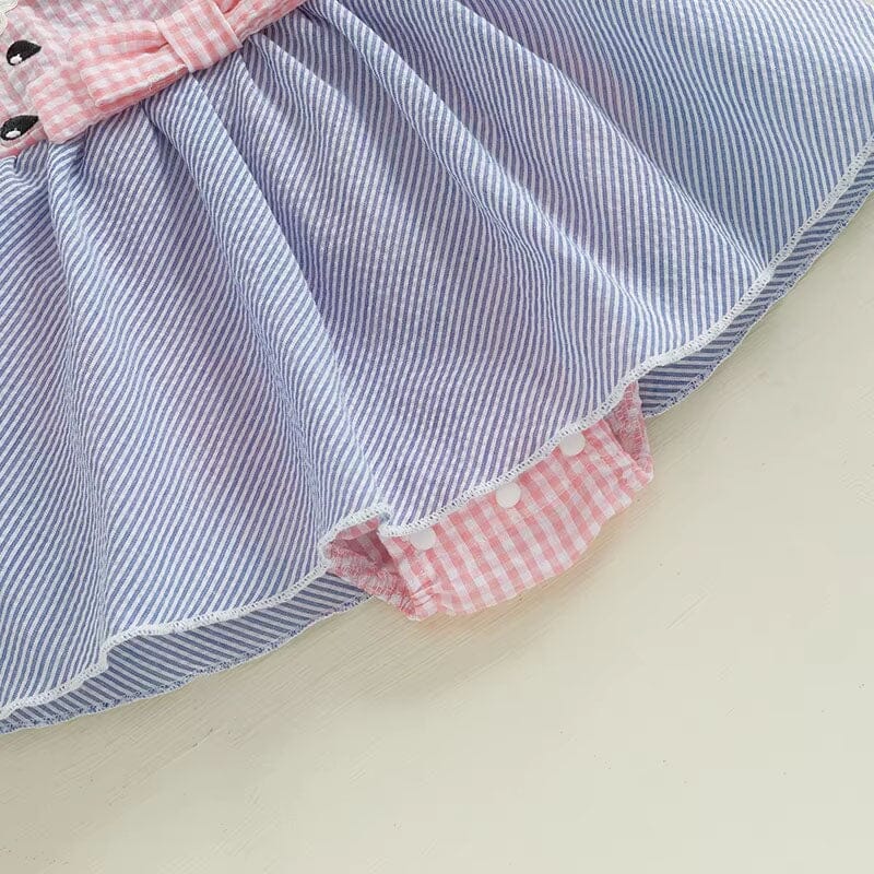 This adorable baby girl romper is the perfect summer outfit with its sweet watermelon-inspired design. Featuring flutter sleeves, a smocked bodice, and a playful gingham bow, it brings a charming mix of classic and fun details. Available in two lovely colors—pink and blue—it’s a great choice for sunny outings, family photos, or festive celebrations.